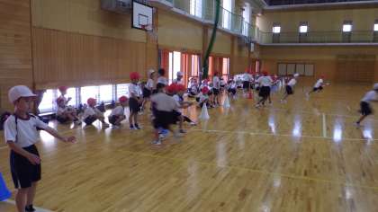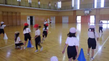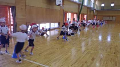 2年生が学年合同体育でリレー大会をしました。最後まで一生懸命走り、応援をしました。