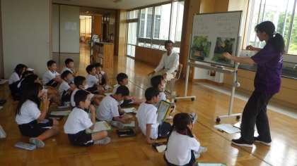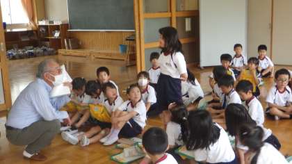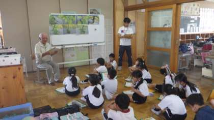 6/7 野菜会議 2年生 公開日 2023/06/08 更新日 2023/06/08 各学年から 2年生の生活科の様子です。畑ボランティアの畑名人の方々にお越しいただき、野菜会議を開きました。子どもたちは自分の育てている野菜について、名人に教えていただきました。「水やりはいつすればいいですか。」「赤くなったピーマンは食べられますか。」など、疑問に思ったことを質問しました。畑名人の皆様、ありがとうございました。 2年
