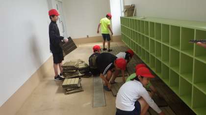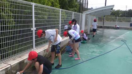 6/7 プール掃除 6年生 公開日 2023/06/08 更新日 2023/06/08 各学年から プール開きに備えて、6年生がプール掃除をしてくれました。側溝の泥を書きだし、網をたわしでこすりました。プールをブラシやたわしでこすってきれいにし、更衣室やトイレも掃除してくれました。6年生の皆さん、ありがとうございました。全校のプールを一生懸命きれいにしてくれました。 6年