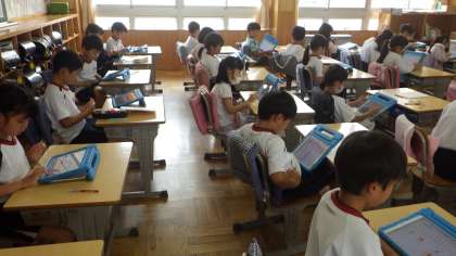 2年生の算数の様子です。学習が早く終わった子は、キュビナを使って、個々の学習をしていました。