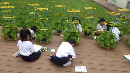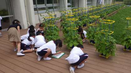 6/27 アサガオの観察 1年生 公開日 2023/06/27 更新日 2023/06/27 各学年から 1年生の生活科の授業です。アサガオがずいぶん大きくなってきました。子どもたちはアサガオを見て、絵や気づいたことをかいていました。「つぼみができたんだよ。」「葉っぱに虫がついている。虫がたくさん糞をしている。」と教えてくれました。 1年