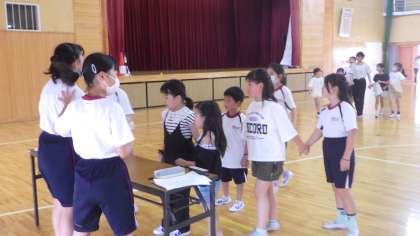 6/28 ヒーローズ 6年生 その2 公開日 2023/06/28 更新日 2023/06/28 各学年から 6年生が全校のお兄さん・お姉さんになって、楽しい遊びを考えてくれました。写真は、「だるまさんがころんだ」「スタンプラリー」「読み聞かせ」です。スタンプラリーは4つの問題を解きながら学校を回り、4つ揃ったら、体育館へ行き、最後のスタンプをもらいました。 6年