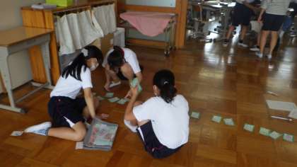 6/29 浄水北小カルタ作り 5年生 公開日 2023/06/29 更新日 2023/06/29 各学年から 5年生の総合的な学習の時間です。浄水北小学校や浄水地区のよさ、自慢を調べ、カルタにする活動をしています。テーマごとにグループを作り、調べたことからカルタの文章を考えています。 5年