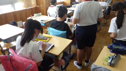 7/4 形が動く絵が動く 5年生 公開日 2023/07/04 更新日 2023/07/04 各学年から 5年生の図工の授業です。動きが連続して見えるアニメーションの仕組みを生かして、表現を工夫する活動をしていました。紙粘土で形作った物や、身近な物を学習用タブレットでコマ撮りしたり、タブレットに描いた絵をアニメーションにしたりしていました。 5年