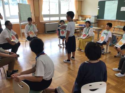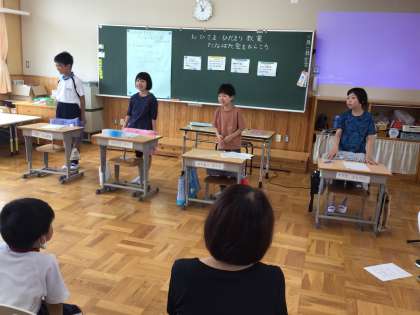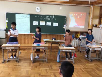 7/7 たなばた会 おひにこ組 公開日 2023/07/07 更新日 2023/07/07 各学年から おひさま・ひだまり組が「たなばた会」を開き、にこにこ組や教員を招待してくれました。歌やハンドベルの発表では、今までの練習の成果を出すことができました。クイズや司会も、大きな声で発表することができました。最後に、みんなでフルーツバスケットをして遊びました。ルールを守って楽しく遊ぶ姿、友達を思いやる姿も見られ、素敵なたなばた会になりました。