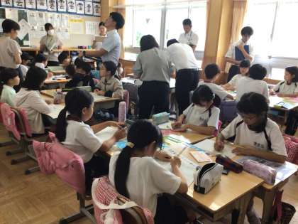 7/13 クラスのために 4年生 公開日 2023/07/14 更新日 2023/07/14 各学年から 4年生の学級活動です。学級をよくするための活動をしてみて、グループの問題点について話し合いました。 研究授業で学校内外の先生の参観する中、話し合いに集中し、真剣に話を聞いたり、自分の意見を言ったりする姿が見られました。自分たちのクラスをよくするためにがんばろうとする気持ちが伝わってきました。 4年