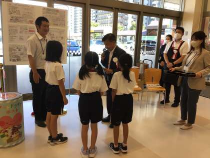 9/1 バロー フードドライブ 公開日 2023/09/01 更新日 2023/09/01 お知らせ 昨年度の3年生は、総合的な学習で、フードロスの問題に取り組みました。地元のバロー浄水店と連携して、ポスターをかいたり、フードドライブポストを作ったりしました。 今日は、バロー浄水店にフードポストが設置される記念式典が行われ、児童の代表が参加しました。そして、感謝状をいただきました。子どもたちの取組を後押ししてくださり、このような機会を与えてくださったバローの皆様に感謝します。 4年