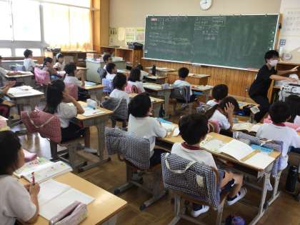 2年生の算数の授業です。かさの単位「1リットル」について、穴埋めにした文章を読んで復習をしていました。