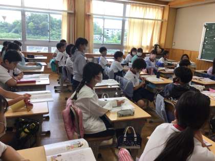 6年生の道徳の授業です。修学旅行をイメージして、具体的な場面で、自分ならどのように行動するか、それはどうしてかということを話し合っていました。