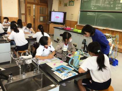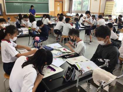 9/6 花のつくり 5年生 公開日 2023/09/07 更新日 2023/09/07 各学年から 5年生の理科の授業です。アサガオの花を一人一つ取ってきて、花のつくりを調べました。分解して、おしべやめしべ等の数を調べたり、虫眼鏡で観察をしたりしていました。 5年