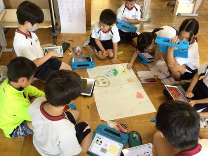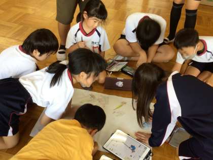 9/13 カルタの絵をみんなで その2 公開日 2023/09/13 更新日 2023/09/13 特色ある学校づくり推進事業 カルタの文の内容を表すためには、何を描いたらよいのか、話をしながら描いていました。わくわくでの活動をもとに、5年生が仕上げていきます。