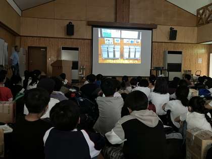 野外センターの決まり、施設の使い方、シーツの畳み方などについて、ビデオを見ました。