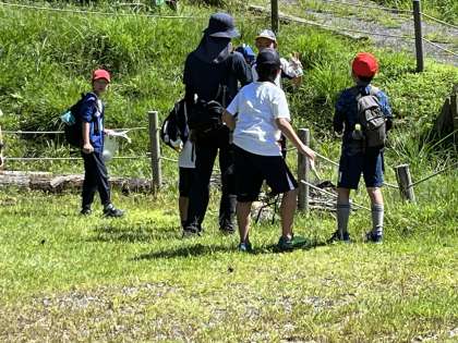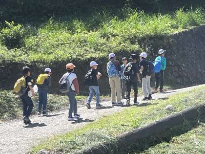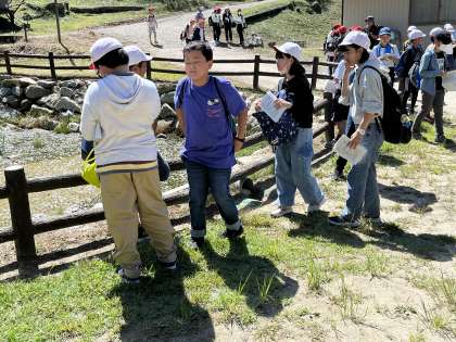 ファミリーサイトに移動しながら、探検ビンゴです。大きな石、秋を感じるもの、生き物のフンなど、カードに書いてあるものを探して歩きます。