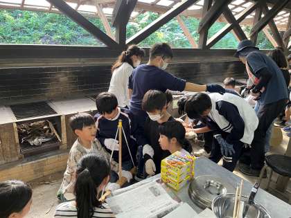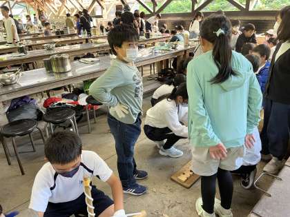 9/15 キャンプ 火起こし体験 公開日 2023/09/15 更新日 2023/09/15 学校行事 カレーとご飯の準備ができたところで、火起こし体験です。交代で火起こし器を動かします。早い班は煙が立ってきました。 5年 行事