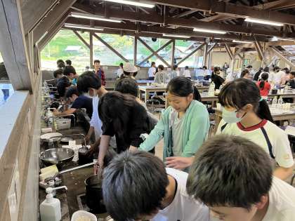 9/15 キャンプ 片付け 夕べのつどい 公開日 2023/09/15 更新日 2023/09/15 学校行事 カレーの片付けと夕べのつどいの様子です。片付けに時間がかかったため、夕べのつどいは短くしました。用意していたゲームは明日行います。 5年 行事