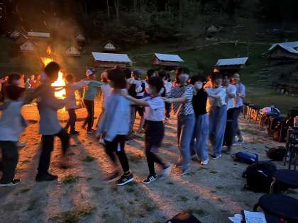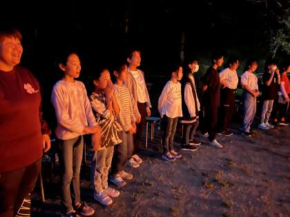 ボンファイヤーでは、クラスごとの出し物を楽しみました。みんなで楽しもうという気持ちが感じられ、盛り上がりました。
