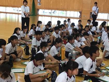 9/22 まごころの森 公開日 2023/09/22 更新日 2023/09/22 各学年から 3年生の総合的な学習の時間です。まごころの森の生き物について調べてきた3年生。今日は、森を整備してくださっている里山づくりの会の方を講師に招き、お話を聞きました。森にすむ生き物にも詳しい方なので、子どもたちは次々に質問をしました。しっかりお話を聞き、メモを取っていました。整備に使う機械も見せていただきました。 講師の方、お忙しい中、子どもたちに話をしてくださり、ありがとうございました。 3年
