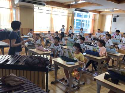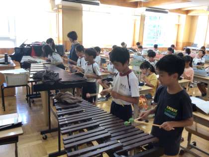9/27 木琴 3年生 公開日 2023/09/28 更新日 2023/09/28 各学年から 3年生の音楽の授業です。鍵盤ハーモニカを練習した曲の一部を木琴で演奏するために、順番に練習をしていました。 3年