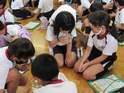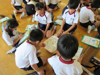 9/27 水質調べ 4年生 公開日 2023/09/28 更新日 2023/09/28 各学年から 豊田市環境保全課の方に来ていただき、伊保川の水質について、調査方法を知り、実験をしました。伊保川の水は、BODが2以下で、魚がすめる水質の中でもきれいな方であるということがわかりました。川の経年変化についても教えていただき、昔より水質がよくなったことがわかりました。 4年