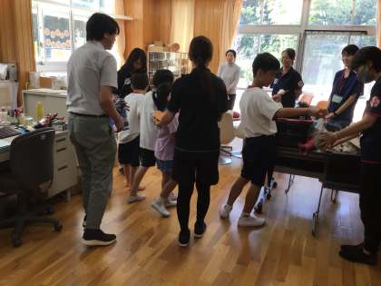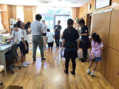 おひさま・にこにこ・ひだまり組の子どもたちが、畑を耕したり、お世話を手伝ったりしてくださったボランティアの方々への感謝の気持ちを込め、地域学校共働本部室の方々に、収穫したピーマンをプレゼントしました。「ありがとうございました」と大きな声でお礼を言って渡しました。