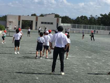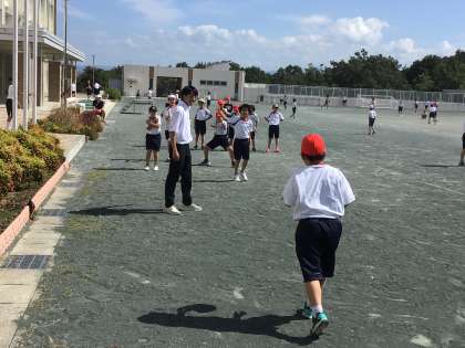 10月2日(月)から2週間、教育実習生が4年1組に入っています。子どもたちと休み時間にドッジボールをしていました。