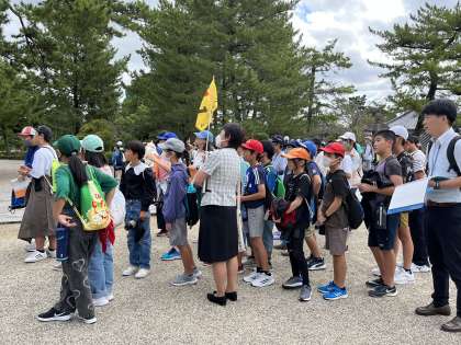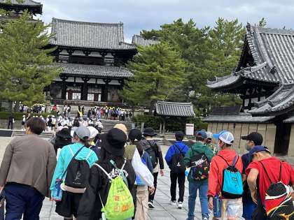 法隆寺では、ガイトさんの案内で、ところどころ話を聞きながらの見学です。