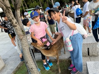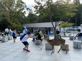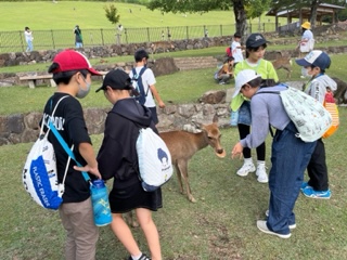 鹿と戯れる子どもたちです。集合時刻を守り、集合できました。宿に向かいます。