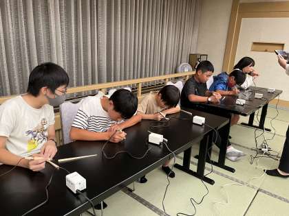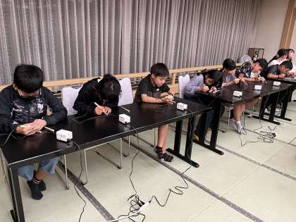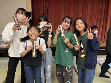 10/4 修学旅行 はし作り体験 公開日 2023/10/04 更新日 2023/10/04 学校行事 字や絵をかいたら、完成です。はし置きとともに、袋に詰めていただきました。思い出に残るお土産になりました。 このあと、お風呂に入り、班長会を行います。明日の活動についても、またホームページでお知らせします。おやすみなさい。 6年 行事