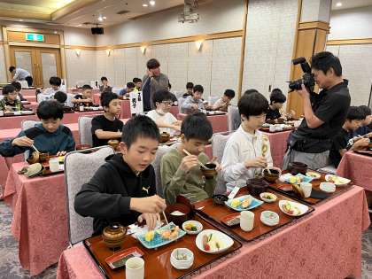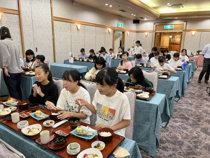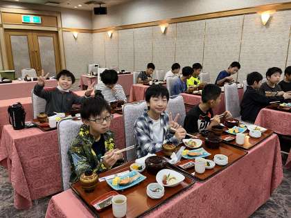 修学旅行2日目。眠そうな子もいますが、みんな元気です。