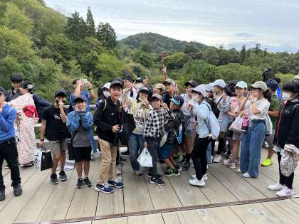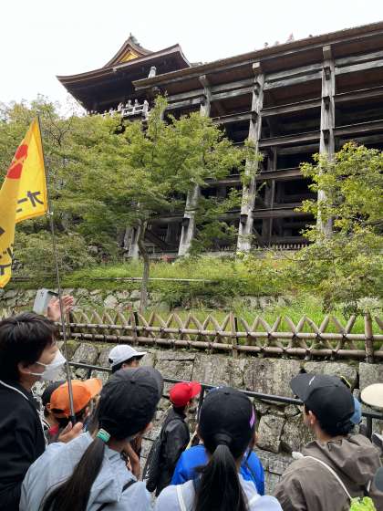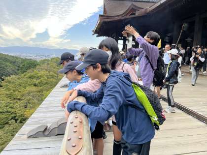 10/5 修学旅行 清水寺 公開日 2023/10/05 更新日 2023/10/05 学校行事 清水寺の坂を上がったところで集合し、学級ごとにガイドさんの後について見学です。清水寺の上から見下ろして、「高い。怖い。」下から見上げ、「やっぱり高い」釘を使わずに作っているなんて‥と驚いていました。 この後は、清水の坂を降りながら、グループで買い物をします。 6年 行事