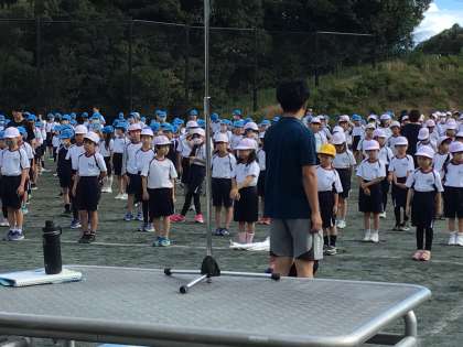 今週から運動会の練習が本格的に始まりました。今日は、初めての全校練習。開会式と運動会の歌の練習をしました。