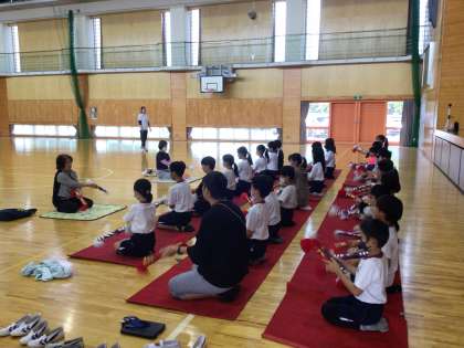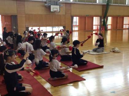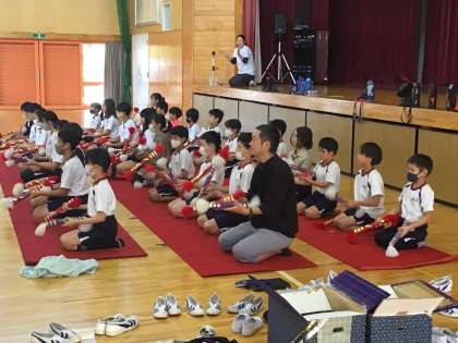 10/11 銭太鼓の練習 公開日 2023/10/11 更新日 2023/10/11 学校の特色ある活動 運動会では、浄水音頭も全校・地域・保護者で踊ります。そのときに、銭太鼓クラブが歌に合わせて演技をします。その練習を今日のロングハッピータイムに行いました。銭太鼓クラブの講師の方々、ご指導ありがとうございました。