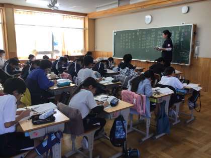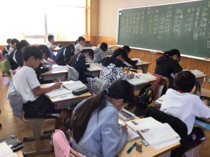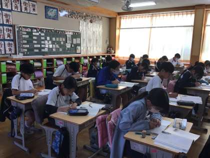 6年生の国語の授業です。漢詩をノートに書き、声に出して読んでいました。