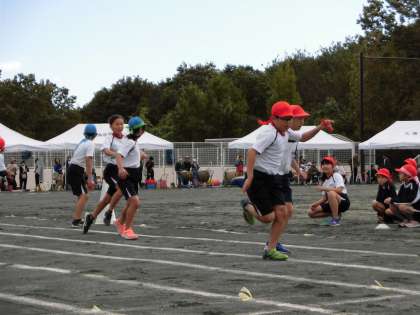 10/21 5年生 全員リレー 公開日 2023/10/22 更新日 2023/10/22 学校行事 5年生の全員リレー「心をひとつに ゴーゴーゴー!」です。 自分たちで走る順番を決め、チームで声をかけあって練習してきました。5年生一人一人が全力で走り、バトンをつなぎました。 5年 行事