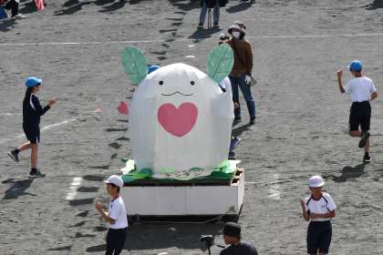 共働本部の方々や中学生のボランティアが、踊りの上手な子にバッチを渡すことを企画・準備してくださり、浄水音頭を盛り上げてくださいました。共働本部は、その外にも、中学生ボランティアと一緒に、コーヒーなどの販売や、駐輪場の見回りなどもしてくださいました。