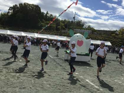 また、会場の真ん中に、10周年キャラクター・テンテンを置き、その周りで、お手本の6年生が踊りました。