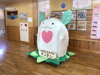10周年記念キャラクター・テンテン。運動会でも大活躍したテンテンは、昇降口に移りました。今年度中、昇降口で浄水北の子どもたちを見守ります。