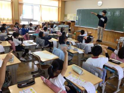 2年生の国語の授業です。新しく習う漢字について、書き順や使い方を確認しながら、丁寧にドリルに書いて練習をしていました。