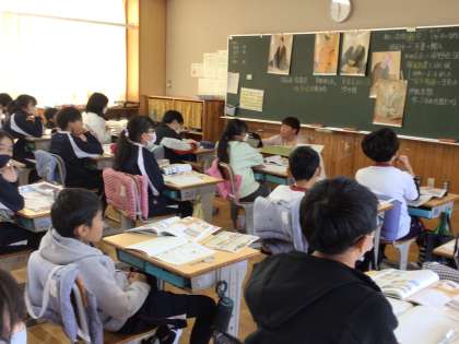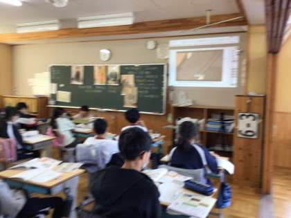6年生の社会科の学習です。江戸時代の学問や文学について学びました。人物についてまとめたデジタル教科書の動画を活用して復習していました。
