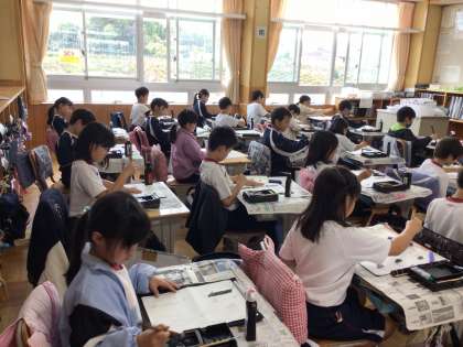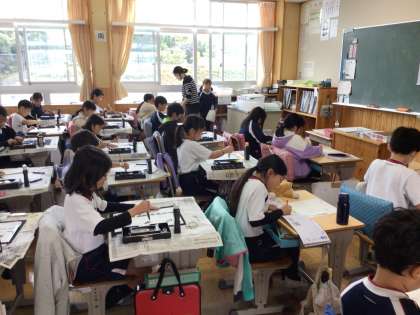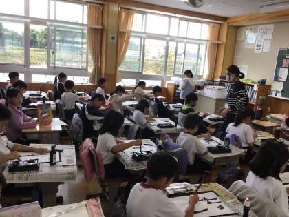 11/9 点とはね 3年生 公開日 2023/11/09 更新日 2023/11/09 各学年から 3年生の書写の授業です。初めて「点」と「はね」の出てくる字を書くので、その前に、「点」と「はね」を取り出して練習していました。姿勢に気を付けて、集中して書いていました。 3年