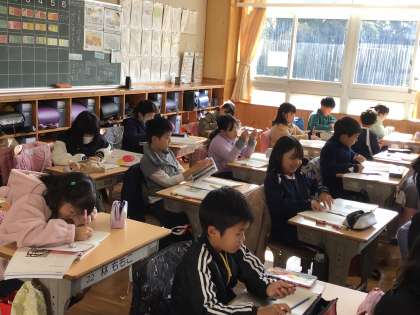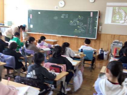 3年生の国語の授業です。物語文「モチモチの木」を読んで、主人公の豆太はどんな子なのか、文章から読み取って、性格を考えていました。