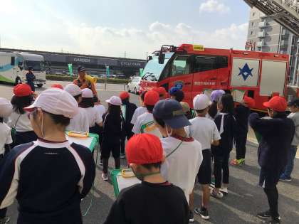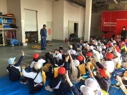 3年生が豊田北消防署に出かけ、見学をさせていただきました。消防署の仕事について、お話を聞かせていただいたり、庁舎の中を見せていただいたりしました。初めて見る消防署の中の様子に、子どもたちは興味津々です。