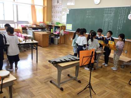 11/30 発表の練習 1年生 公開日 2023/11/30 更新日 2023/11/30 各学年から 1年生のまごころ発表会の練習の様子です。音楽で学習した合奏や、まごころの森で見つけた秋のすてきを発表します。 1年