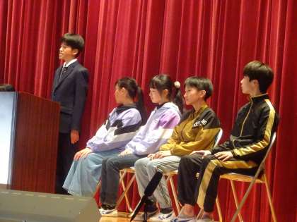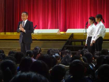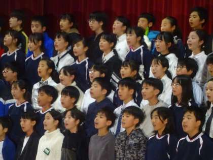 12/2 10周年記念式典 その2 公開日 2023/12/05 更新日 2023/12/05 学校行事 劇は、浄水地区の開拓時代、学校ができあがる前の話し合い…と進みます。開校式の場面では、初代の校長先生からお言葉をいただきました。浄水小学校から分離したときの式で歌われた「花は咲く」の合唱もしました。 行事 地域学校共働本部