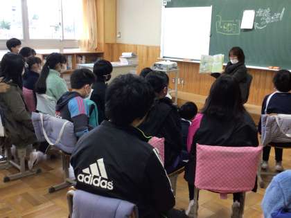 12/5 読み聞かせ 公開日 2023/12/06 更新日 2023/12/06 特色ある学校づくり推進事業 読み聞かせボランティアの皆様が来校し、子どもたちに読み聞かせをしてくださいました。子どもたちは、真剣に聞いたり、楽しそうに反応したりして、本を楽しんでいました。 地域学校共働本部