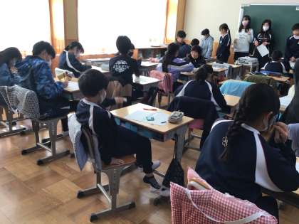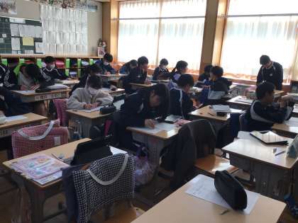 6年生が集中して原稿用紙に向かっていました。卒業文集の原稿を書いていました。