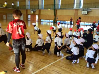 12/14 ソフトボール 2年生 その2 公開日 2023/12/15 更新日 2023/12/15 各学年から ソフトボール(競技で使うボールと同じ大きさで、柔らかくしてあるもの)を使って、ひもより高くボールを投げる練習をしました。遠くに投げるコツも教えていただきました。 トヨタレッドテリアーズの皆様、ありがとうございました。 2年