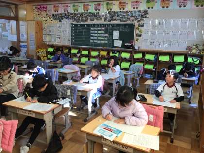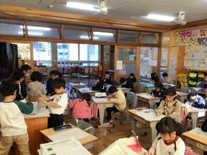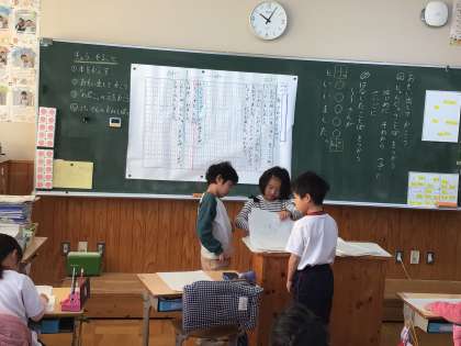 12/14 作文 1年生 公開日 2023/12/15 更新日 2023/12/15 各学年から 1年生の国語の授業です。まごころ発表会のことを思い出して、「はじめ」「なか」「おわり」に書くことを考えたあとに、書きました。がんばった出来事なので、たくさん書けていました。 1年