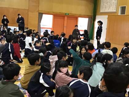 企画委員会からは、「ポケットからこんにちは キャンペーン」の結果報告がありました。(寒くてもポケットから手を出しましょうというキャンペーンです。)その後、「冬休みに何が楽しみですか」というインタビューも行い、発表したい子がたくさん手を挙げました。