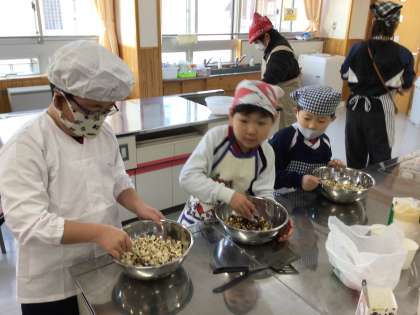 おひさま・にこにこ・ひだまり組が、自分たちが育てたトウモロコシでポップコーンを作りました。教員が作ったポップコーンを以前に食べ、今度は「自分たちが作る」と楽しみにしていた子どもたち。蓋をあけるのを「まだかな、まだかな。」とわくわくして待ちました。蓋をとって、上手にできたポップコーンを見て大喜び。